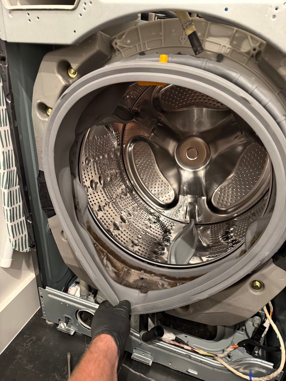 Customer complaint: The washer was leaking water around the door and had visible mold buildup on…